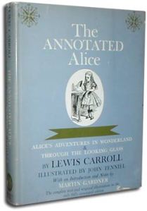 The Annotated Alice holds the complete text from Lewis Carroll’s (Charles Lutwidge Dodgson) Alice’s Adventures in Wonderland and Through the Looking Glass with original illustrations by John Tenniel. The margin notations throughout explain thing like the history of Dodgson, the world of Alice, why a particular tea is mentioned, what was found in the original manuscripts, on and on an on. All updated through 1960, of course. There is a newer version (shown below) but it doesn’t smell as good.